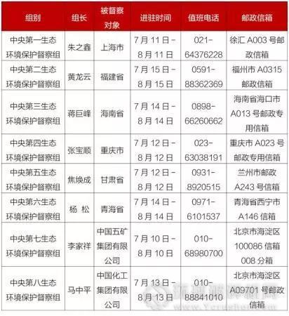 中央生態環境保護督察組分別設立專門值班電話和郵政信箱