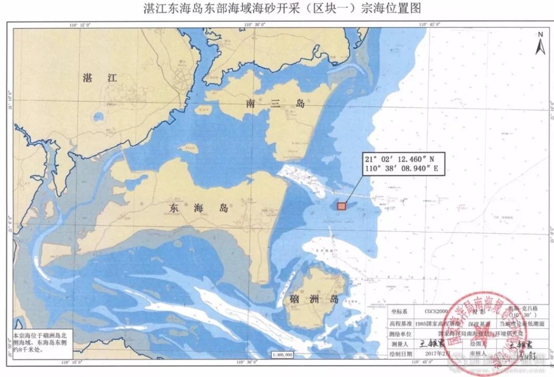湛江東海島東海域區塊一海砂開采海域使用權采礦權