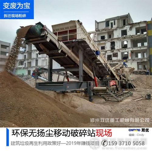 移動(dòng)式建筑垃圾回收設(shè)備,可直接駐扎現(xiàn)場(chǎng)進(jìn)行粉碎篩分,符合了“源頭減量、就地變廢為寶”宗旨。