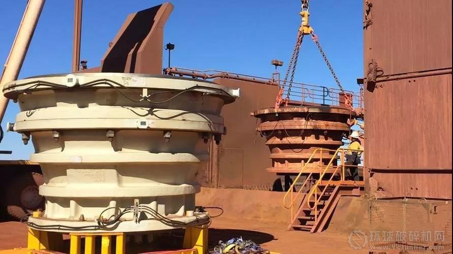 當(dāng)有些客戶要求粗碎旋回破碎機(jī)達(dá)到最高水平的開機(jī)率時(shí),還可以考慮第三種方案。切換上機(jī)架預(yù)先(在現(xiàn)場(chǎng)或場(chǎng)外)裝配好襯板的整體式機(jī)架,拆卸現(xiàn)有機(jī)架后,無需拆卸定錐襯板,即可進(jìn)行安裝。
