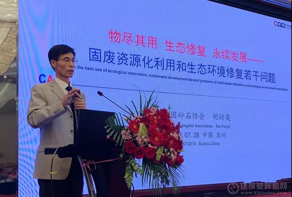 中國砂石協會會長胡幼奕從近代環境污染、面臨的形勢、國內外案例、無廢城市建設的要求、資源化利用和環境修復、企業要重視的問題等方面作題為《物盡其用 生態修復 永續發展——固廢資源化利用和生態環境修復若干問題》的演講報告。