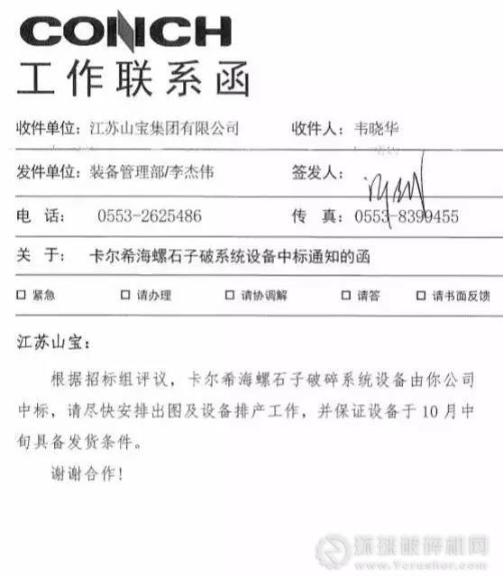 2019年7月,安徽海螺水泥股份有限公司發(fā)布卡爾希海螺3200t/d新型干法熟料水泥生產(chǎn)線工程石子破碎系統(tǒng)設(shè)備采購及服務(wù)招標(biāo)公告。江蘇山寶集團(tuán)緊跟“一帶一路”步伐,追求高質(zhì)量發(fā)展,積極投身項(xiàng)目投標(biāo)準(zhǔn)備工作。經(jīng)過精心準(zhǔn)備,最終經(jīng)歷開標(biāo)、評(píng)標(biāo)、定標(biāo)等審核環(huán)節(jié),成功中標(biāo)。