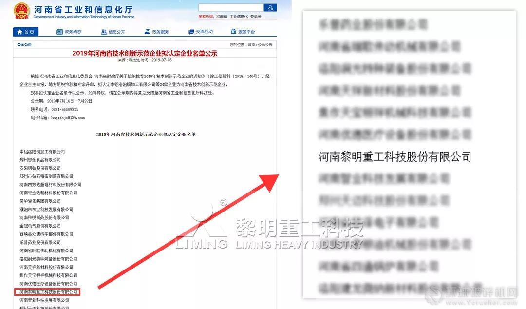 近日,由河南省工業和信息化廳、河南省財政廳共同組織的河南省技術創新示范企業榜單面向社會進行公示。經企業自主申報、地方組織推薦和專家評審等綜合審查,河南黎明重工科技股份有限公司與中鋁洛陽銅加工有限公司、鄭州思念食品有限公司、安陽鋼鐵股份有限公司等24家企業從省內百余家競選的企業中脫穎而出,被認定為2019年河南省技術創新示范企業。該獎項是黎明重工繼獲得中國重型機械行業自主創新先進企業、砂石骨料行業創新企業、鄭州市創新型試點企業等榮譽后,贏得的又一企業創新大獎。