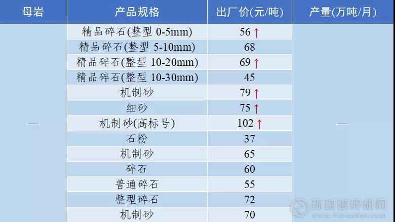 砂石骨料價格和產量發現: