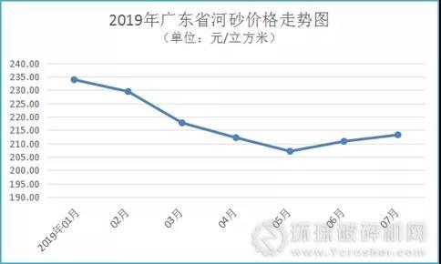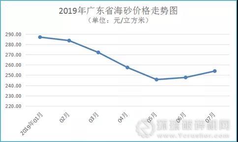 砂石骨料網從廣東省發改委價格監測中心了解到, 受多地砂石場環保整治、市場供需不平衡以及物流運輸費用較高等因素影響,2019年7月廣東省河砂和海砂價格持續回升,碎石價格維持漲勢。