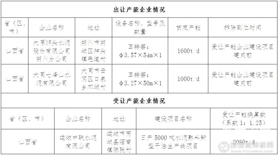 根據山西省工業和信息化廳公示的《太原獅頭水泥股份有限公司朔州分公司和大同七峰山水泥有限公司產能出讓公示》顯示,運城中聯水泥有限公司擬在山西運城市芮城縣陌南鎮陳張村建設一條日產5000噸水泥熟料新型干法生產線項目。