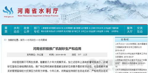 今年以來,河南省在持續打擊非法采砂、嚴格規范合法采砂的同時,采取積極措施,政府牽頭、示范推廣,試點先行、以點帶面,抓好機制砂推廣和應用工作。