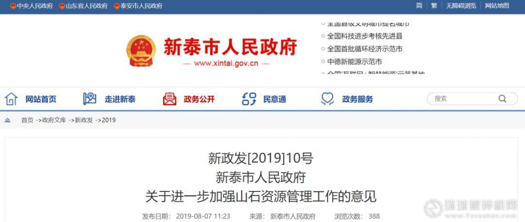 2019年8月份,山東新泰發布《關于進一步加強山石資源管理工作的意見》。意見稱,國企平陽建材作為扎口管理平臺公司,依法依規對全市所有山石礦產品進行統一銷售。
