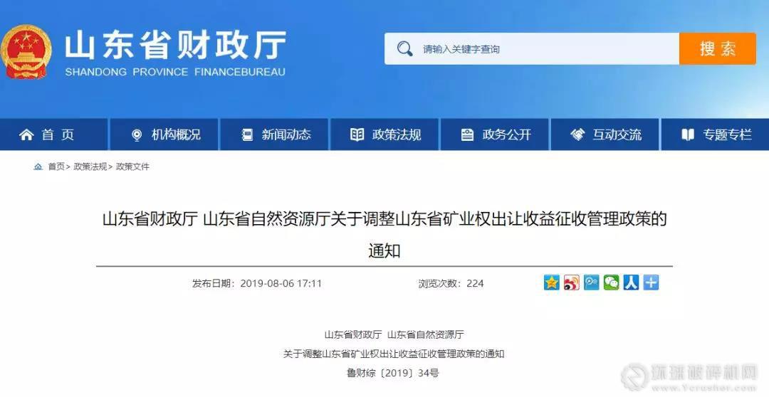 山東省財政廳 山東省自然資源廳關于調整山東省礦業權出讓收益征收管理政策的通知