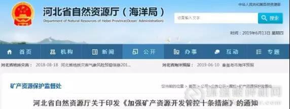 6月11日,河北省自然資源廳印發《加強礦產資源開發管控十條措施》要求,實施礦山關閉和停批。暫停新上露天礦產開發項目審批,已有露天礦山暫停擴大礦區范圍審批。