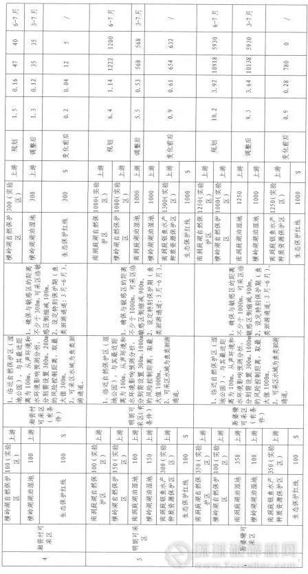2.禁采區規劃:規劃禁采區總數111個,禁采總長度2656.84千米。其中:湘江干流禁采區38個,禁采長度524.70千米資江干流禁采區24個,禁采長度451.35千米沅江干流全線禁采,禁采長度543.50千米澧水干流禁采區8個,禁采長度292.72千米洞庭湖區禁采區40個,禁采長度844.57千米。