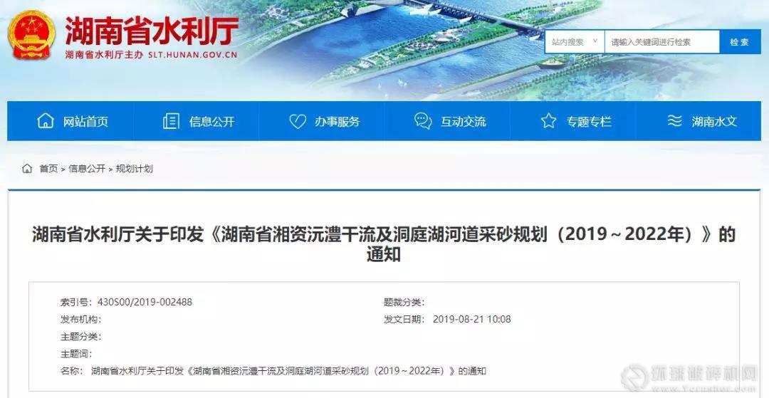 湖南省水利廳透露了《湖南省湘資沅澧干流及洞庭湖河道采砂規劃(2019~2022年)》的相關內容,部分內容整理如下: