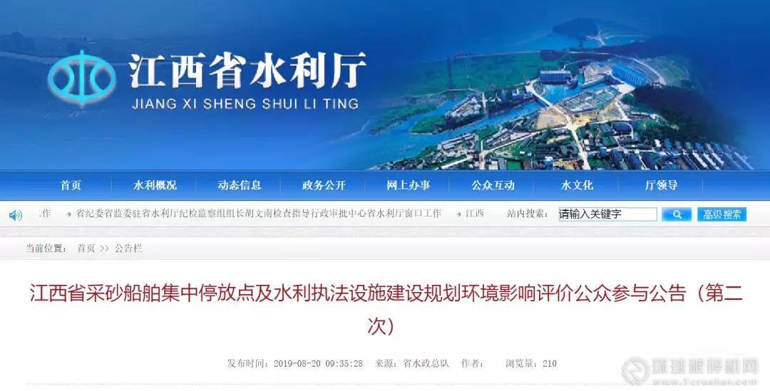 江西省采砂船舶集中停放點及水利執法設施建設規劃環境影響評價公眾參與公告(第二次)