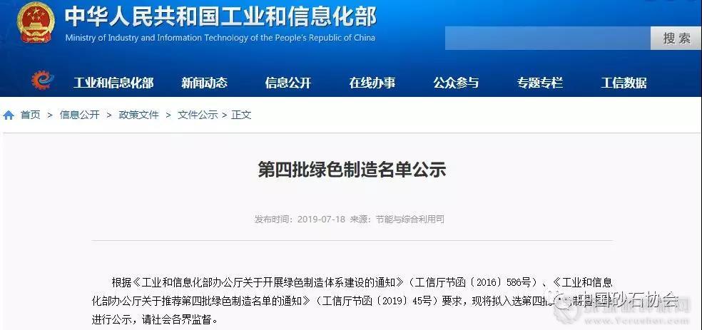 多家砂石及裝備企業入選工信部第四批綠色制造名單