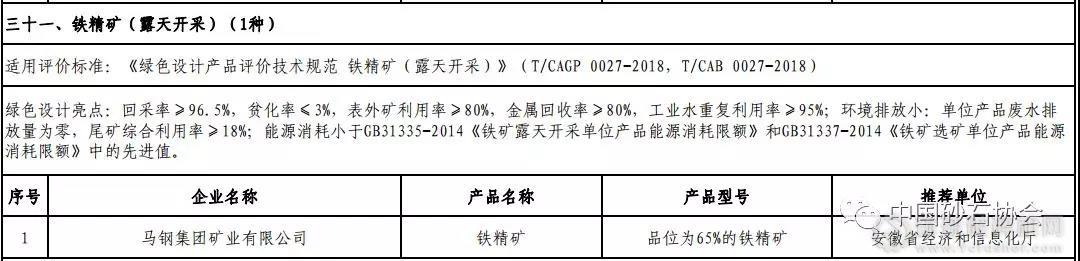 馬鋼集團礦業有限公司鐵精礦產品入選綠色設計產品公示名單