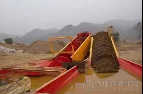 螺旋洗砂設備則是利用螺旋葉片的推進作用清洗泥土,相比輪式洗砂機,螺旋洗砂機洗凈度更高,并且對石料的清洗效果更好。同樣的道理,利用砂、泥、水的不同比重,將砂子提取出來,水和泥順著溜槽流走。