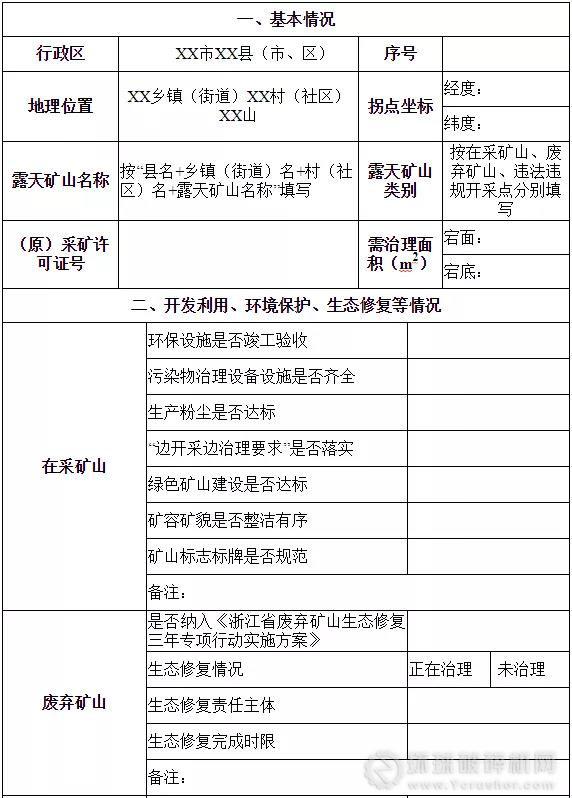 (三)監督檢查。露天礦山綜合整治任務和工作進展信息通過“地礦綜合監管系統”實行動態管理,各縣(市、區)自然資源主管部門要在每月25日前將相關信息(格式見附件5)錄入信息系統,各設區市要加強對縣(市、區)的監督檢查,對不符合要求的、進展滯后的要進行通報。省自然資源廳和省生態環境廳將根據情況對有關市、縣(市、區)開展監督檢查,對露天礦山綜合整治中存在責任不明確、措施不得力、工作不到位、弄虛作假的,要依法依規追責問責。