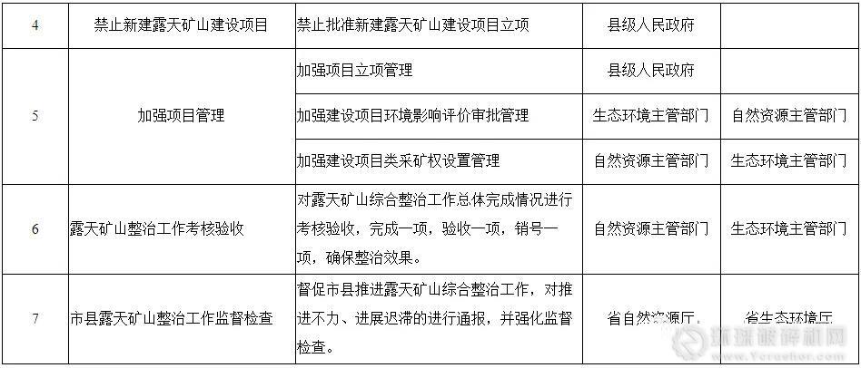 (二)分類開展露天礦山綜合整治。依法關閉違反資源環境法律法規和規劃、污染環境、破壞生態、亂采濫挖的露天礦山;對污染治理不規范的露天礦山,依法責令停產整治,經相關部門組織驗收后方可恢復生產,對拒不停產或擅自恢復生產的依法強制關閉;對責任主體滅失的露天礦山,因地制宜加強修復綠化,減少和抑制大氣揚塵。要全面加強矸石山綜合治理,消除自燃和冒煙現象。