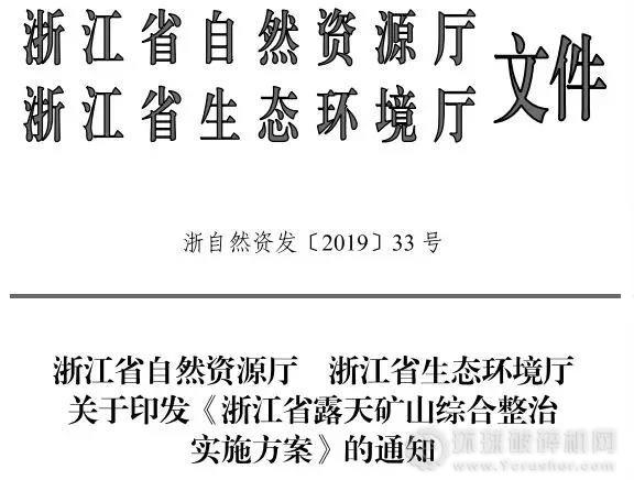 據了解,浙江省自然資源廳、浙江省生態環境廳聯合印發《浙江省露天礦山綜合整治實施方案》(以下簡稱《方案》),《方案》規定,到2020年底前: