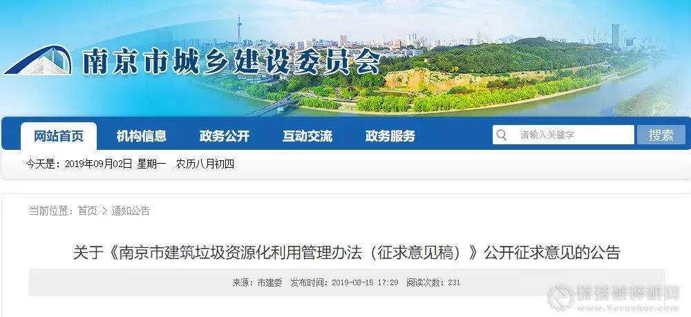 據了解,日前,江蘇省南京市發布《南京市建筑垃圾資源化利用管理辦法》(征求意見稿)(以下簡稱《征求意見稿》),《征求意見稿》要求: