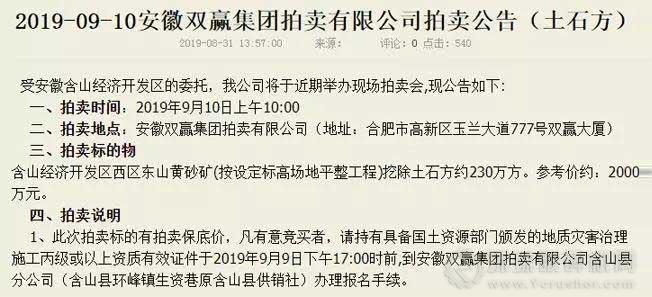據了解, 東山黃砂礦土石方位于G346南側(環峰鎮夏橋村、官山村),本次拍賣的230萬方土石方是安徽含山經濟開發區因