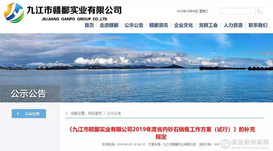 據了解,2019年8月2日,九江市贛鄱實業有限公司發布信息,對《九江市贛鄱實業有限公司2019年度省內砂石銷售工作方案(試行)》作出如下補充規定: