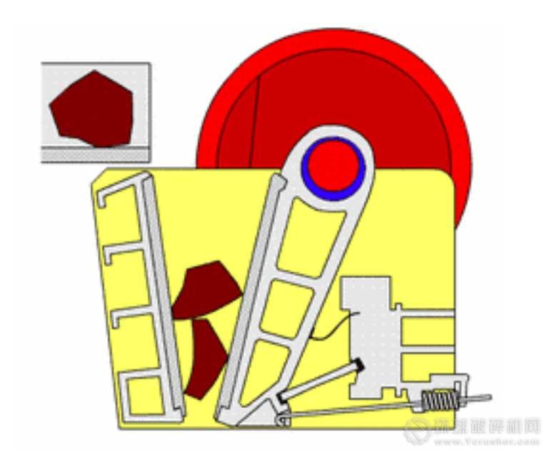 松開拉桿彈簧螺母,取下彈簧,用鏈條或鋼絲繩栓在動(dòng)顎下部,再拉動(dòng)鋼絲繩,使動(dòng)顎靠近定顎,此時(shí)肘板會(huì)自動(dòng)落下。舊肘板拆除后,再用鋼絲繩將新肘板拉入肘板座中,使肘板和肘板座緊密接觸,然后裝上拉桿和彈簧,此時(shí)肘板支在肘板座中,再使用行車?yán)瓌?dòng)鋼絲繩,使動(dòng)顎靠近定顎,而后肘板會(huì)自動(dòng)脫落,安裝時(shí)只需將以上步驟反向重復(fù)即可。