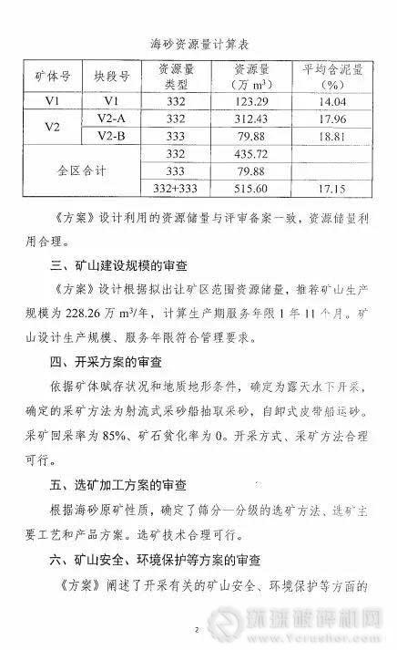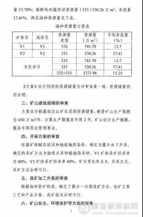 總海砂資源儲量(332+333)637.3萬立方米,含泥量18.09%;
