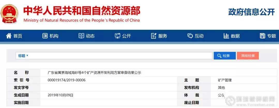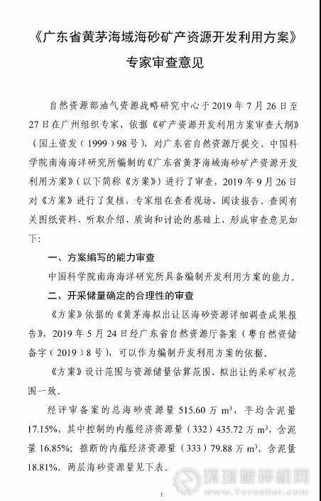 廣東省黃茅海域海砂等4個礦產資源開發利用方案審查結果公示