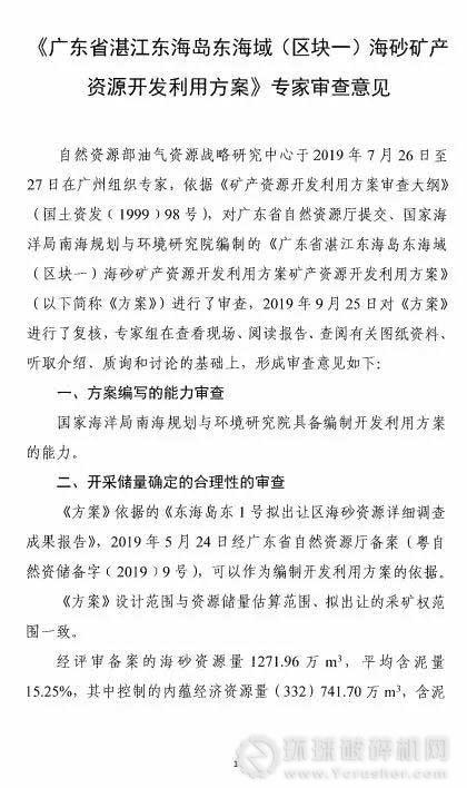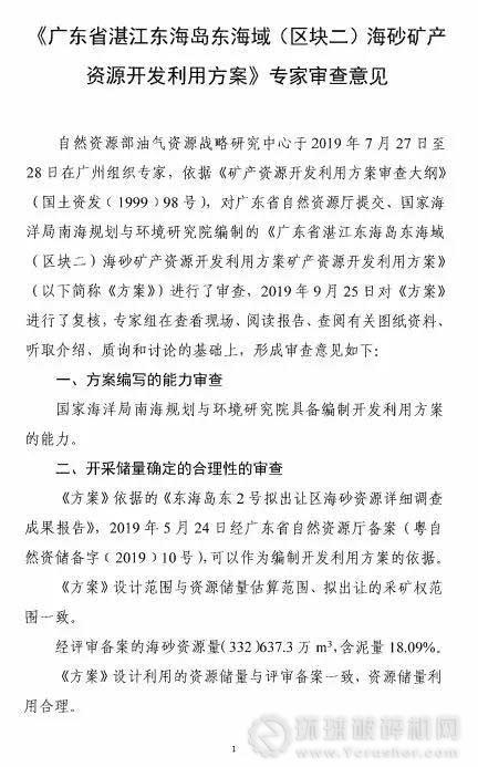 礦產資源開發利用方案”、“廣東省湛江東海島東海域(區塊一)海砂礦產資源開發利用方案”及“廣東省湛江東海島東海域(區塊二)海砂礦產資源開發利用方案”進行審查。其中: