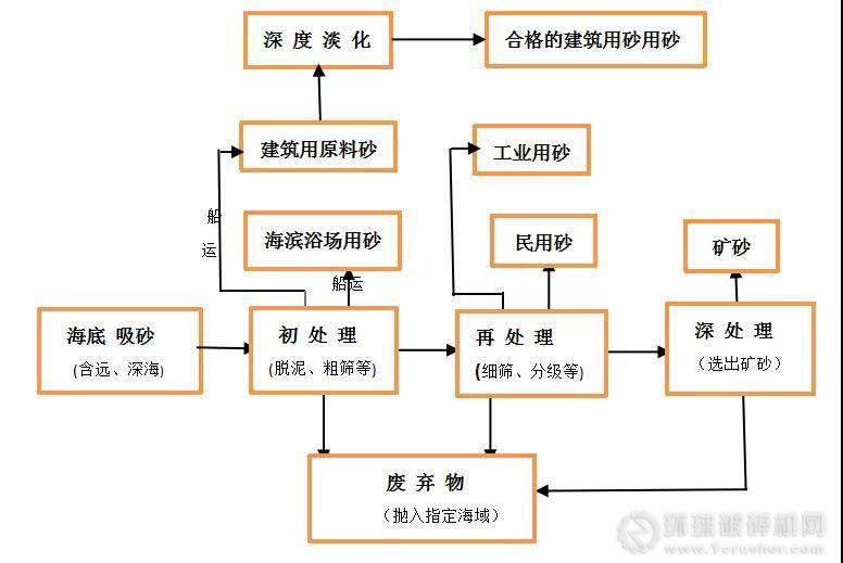 采用船用真空吸送技術可以建成圖2所示的海砂開發利用生產線。