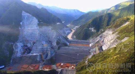 砂石建筑。心墻由防滲能力極強的黏土組成,為了保證大壩的安全運行,295米高的壩體一共要鋪設1000多層的砂土,每層都必須壓實后才能進行第二層的鋪設工作,其總填面積相當于6個鳥巢的大小。第二部分的砂石建筑,所用的原材料都是現場爆破開采,一次爆破就需要2萬噸的炸藥,其威力不亞于半顆原子彈。而建筑大壩所用的石料,需要爆破5次,每次爆破出5萬噸的砂石,才能夠整個建筑所用。