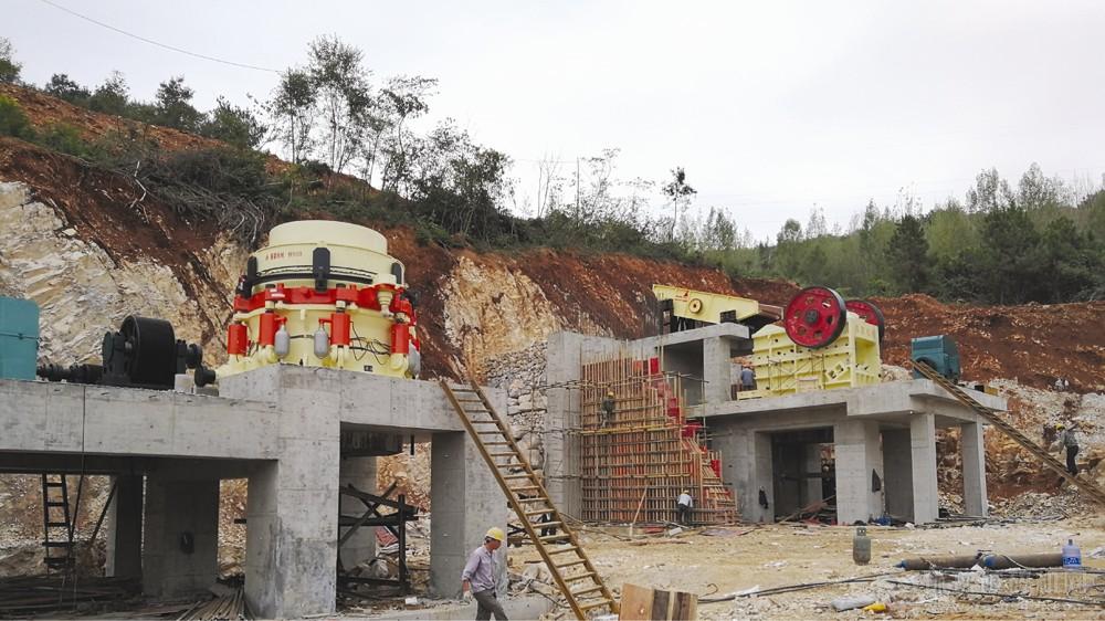 磊蒙機械在湖北承建的PE1500*1800大型環保破碎生產線近日開始進行初步安裝,該條生產線設計產量為1800噸每小時,將產出9種不同規格的精品骨料。