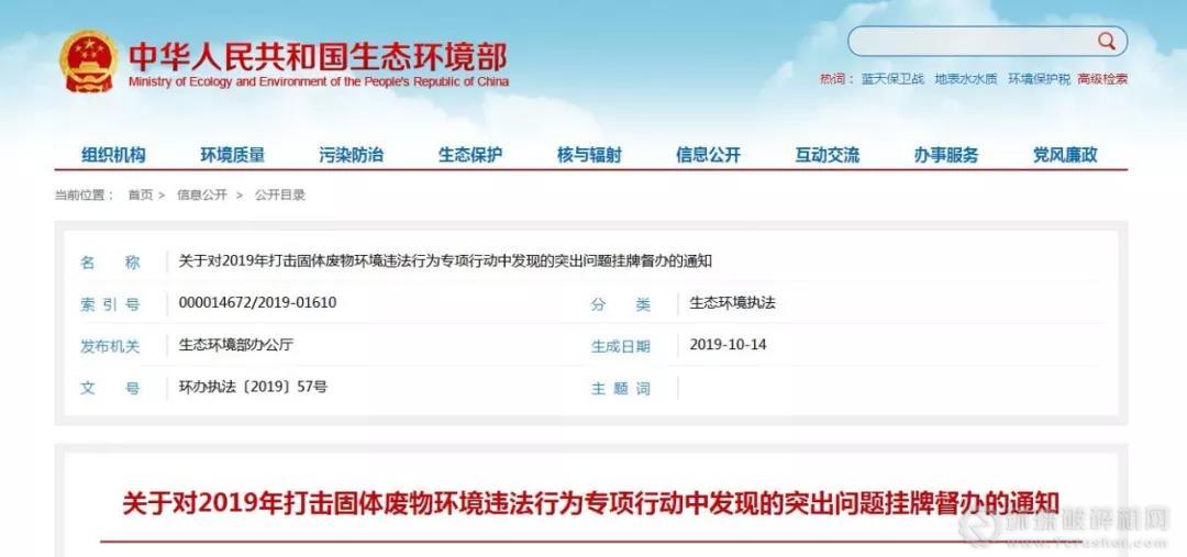 近日,生態環境部發布了《關于對2019年打擊固體廢物環境違法行為專項行動中發現的突出問題掛牌督辦的通知》(以下簡稱“《通知》”)。