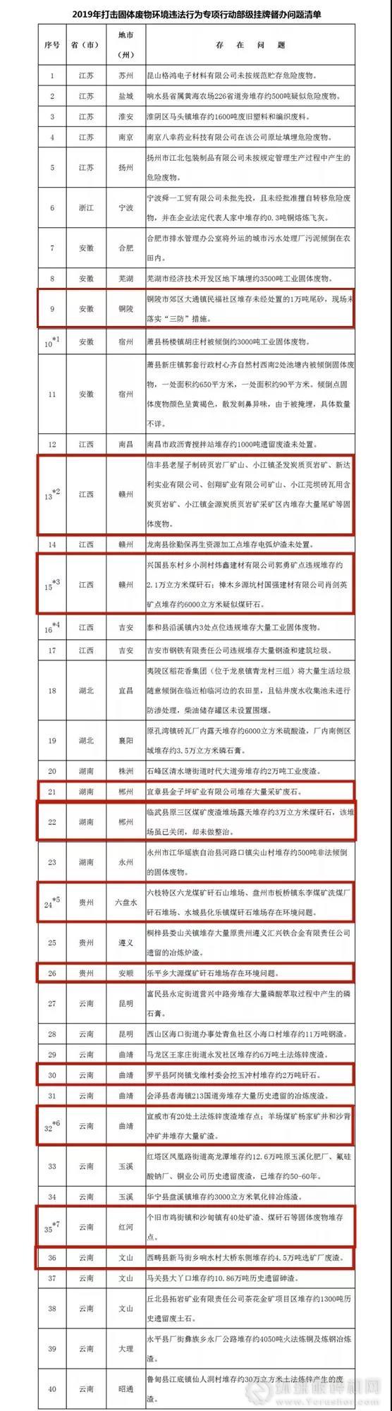 《通知》稱,2019年4月以來,生態環境部組織開展打擊固體廢物環境違法行為專項行動,通過衛星遙感等方式對長江經濟帶11省(市)固體廢物堆存、傾倒和填埋等情況進行排查,并將排查發現的疑似問題逐一交辦問題所在地市、縣兩級人民政府,督促開展現場核查。經各地現場核實和生態環境部審核確認,共發現1262個問題。經研究,生態環境部決定對其中40個(類)突出問題進行掛牌督辦。
