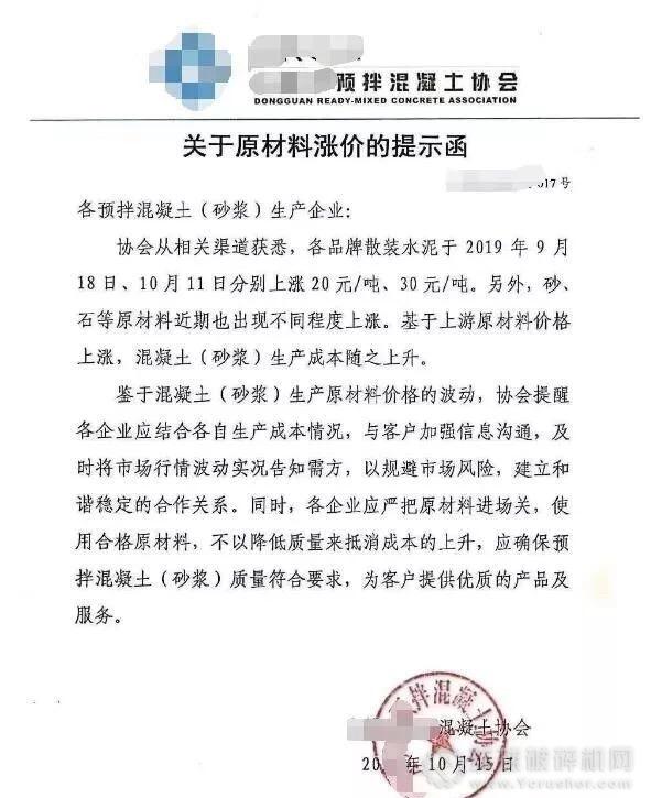 混凝土市場方面,據(jù)市場反饋,廣東地區(qū)原材料水泥價(jià)格持續(xù)上漲,同時(shí)砂、石的價(jià)格長期處于高價(jià)水平,而且供應(yīng)緊張,致使混凝土成本增加,加之近期廣州地區(qū)混凝土市場需求尚可。為提升盈利,多家混凝土企業(yè)發(fā)布漲價(jià)通知,漲幅在30元/m3左右。