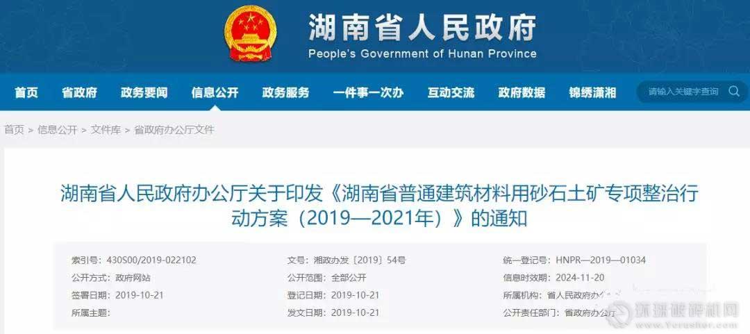 10月24日,決定湖南砂石礦山命運的《湖南省普通建筑材料用砂石土礦專項整治行動方案(2019—2021年)》對外公開。