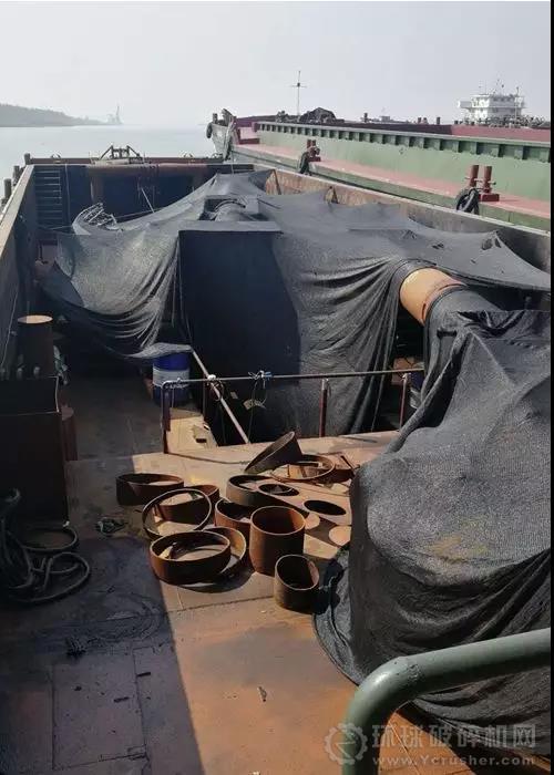正準備帶離嫌疑人開展調查時,有經驗的民警發現旁邊停泊的一艘“滿載運稻船”吃水太淺,不符合常理。當民警揭開貨倉蓋布時,驚訝地發現這艘“滿載運稻船”居然也是一艘非法改裝盜采江砂船,在稻殼的“保護”下,橫七豎八地安裝著吸砂管道和柴油吸砂泵。