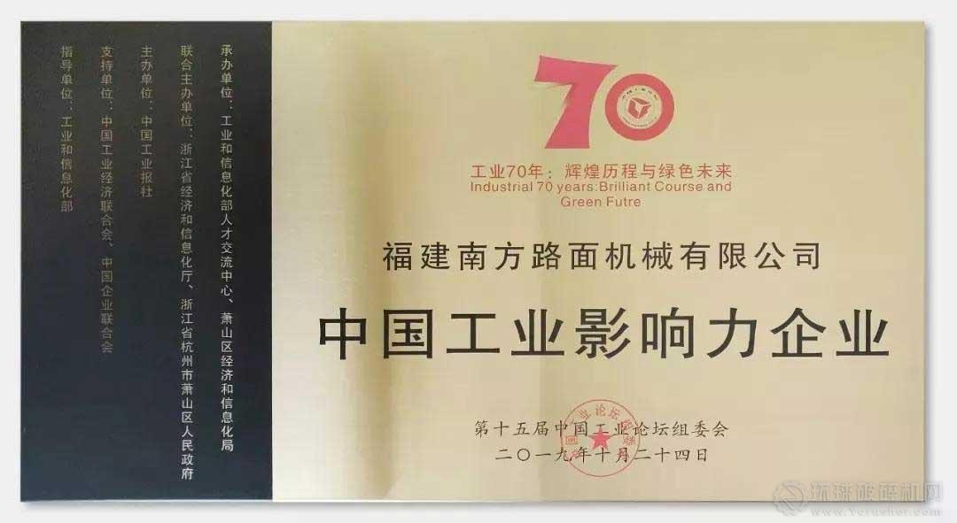 福建南方路面機械有限公司受邀參加本次中國工業論壇,并榮獲了“2018年度中國工業影響力企業”獎項。此次上榜“2018年度中國工業影響力企業”,這是南方路機堅持做專做精、持續提升品牌影響力的結果。