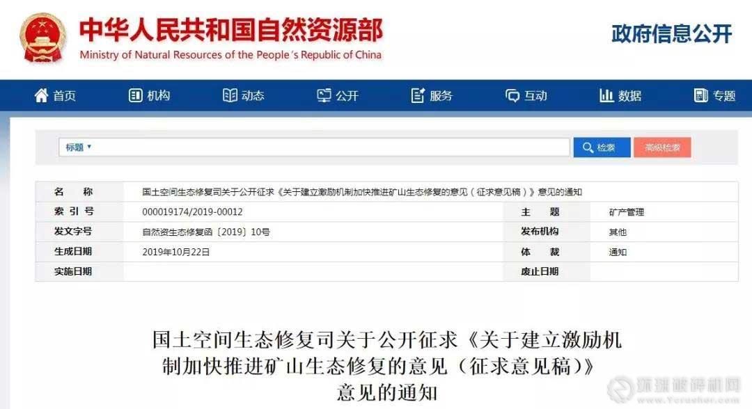 2019年10月22日,自然資源部國土空間生態修復司發布《關于建立激勵機制加快推進礦山生態修復的意見(征求意見稿)》(以下簡稱《征求意見稿》),面向社會公開征求意見。《征求意見稿》提出,鼓勵礦山土地綜合修復利用。尤其是提出,合理利用廢棄礦山土石料。