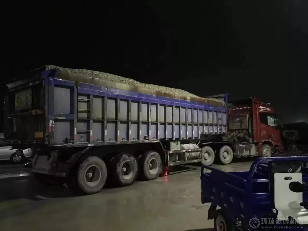 加高的車廂擋板,異于常車的車身、車長車廂內的砂石明顯“冒尖凸頭”。