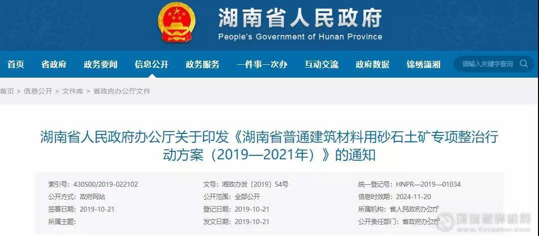湖南省普通建筑材料用砂石土礦專項整治行動方案(2019—2021年)