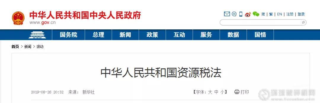 相較于此前發布的《資源稅法(征求意見稿)》內容:對砂石(天然砂、卵石、機制砂石)征收1%-5%或者1元-10元/立方米資源稅——《資源稅法》正式發布文件: