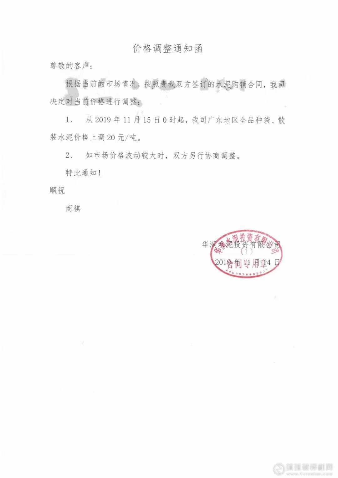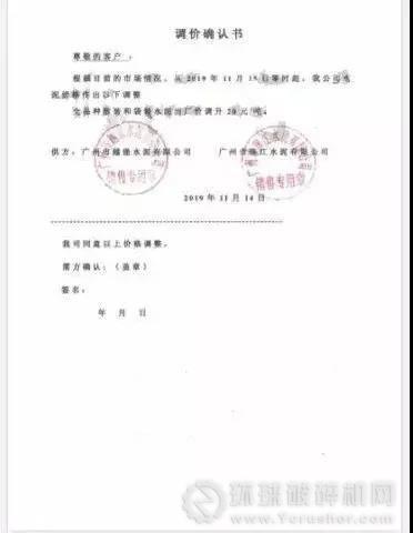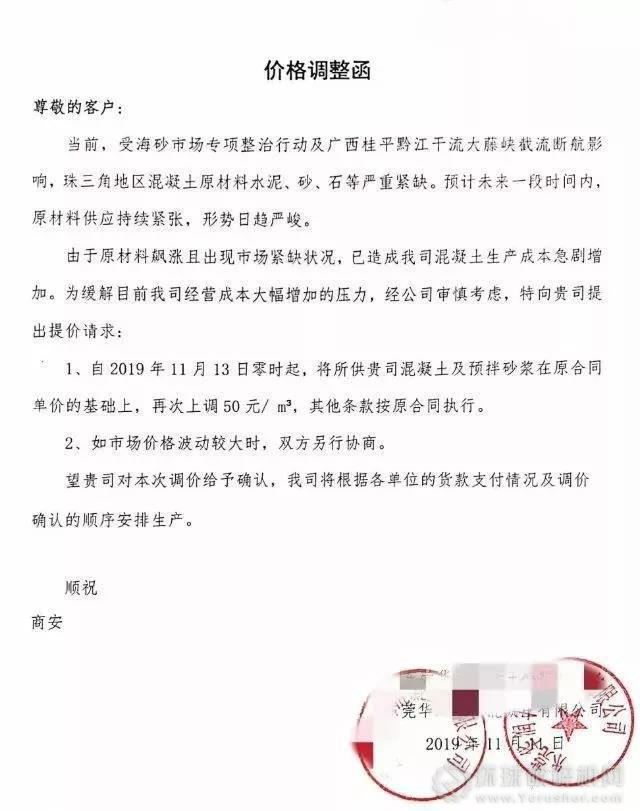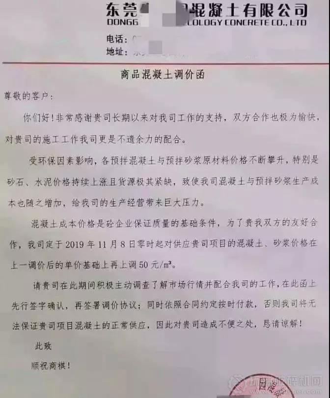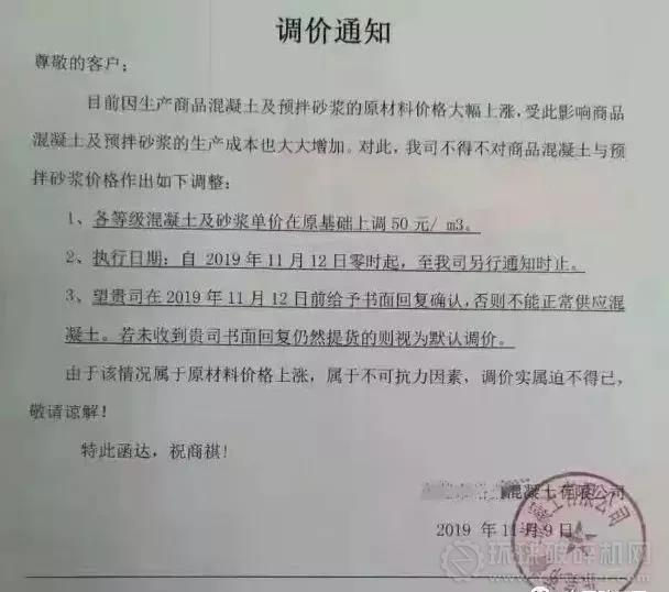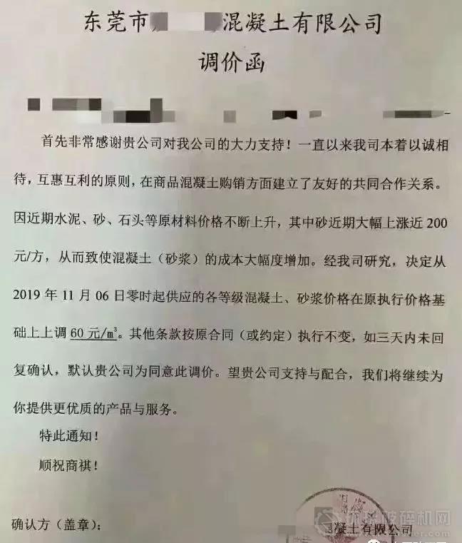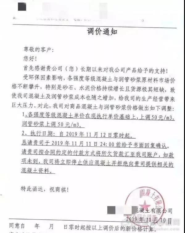 部分廣東混凝土企業漲價通知如下:
