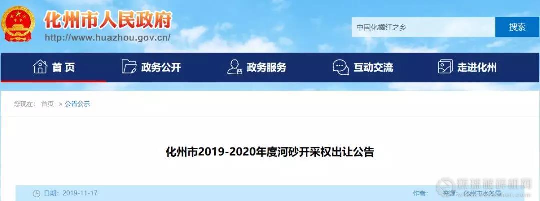 化州市2019-2020年度河砂開采權出讓,本次出讓為羅江、平定水兩條河流共13個標段,采砂期限擬為2019年12月10日至2020年12月9日止,具體時間須以《河道采砂許可證》為準。