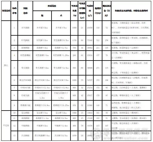 2019-2020年度河砂開采權拍賣標段情況表