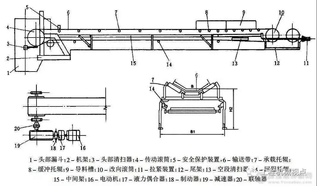 (4)托輥支架安裝傾斜(基本不平及安裝的質量造成),使輸送機整機托輥支架不在同一水平面上,造成輸送帶上的物料不對中,從而引起輸送帶跑偏。