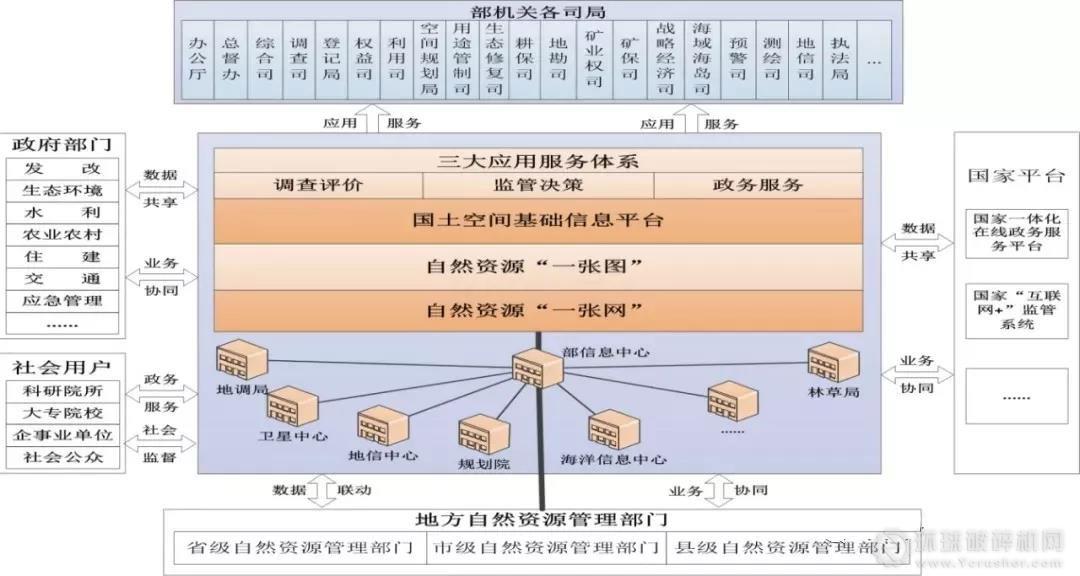 4、自然資源調查監測評價、自然資源監管決策、互聯網+自然資源政務服務是三大應用體系。
