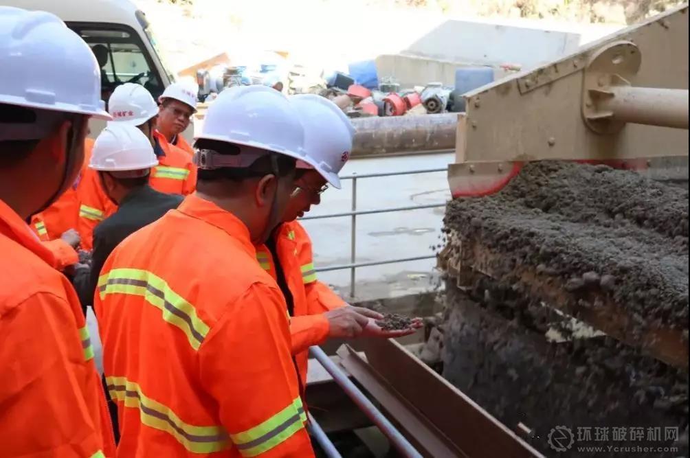 礦山視察機制砂生產的實際情況。一路上,谷城集團董事長助理肖穎琛向車上領導們介紹了礦山各個區域的生產運作情況并作出解答。作為綠色礦山的代表,谷城礦業的礦山治理成效讓調查團表示滿意。調查團一行最后專門來到正在生產中的機制砂設備生產線,廣東省住建廳廖江陵處長現場的機制砂產品進行了抽檢。