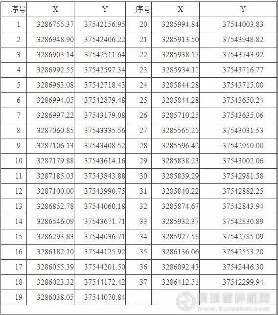 4、采礦權范圍(2000國家大地坐標)及面積: